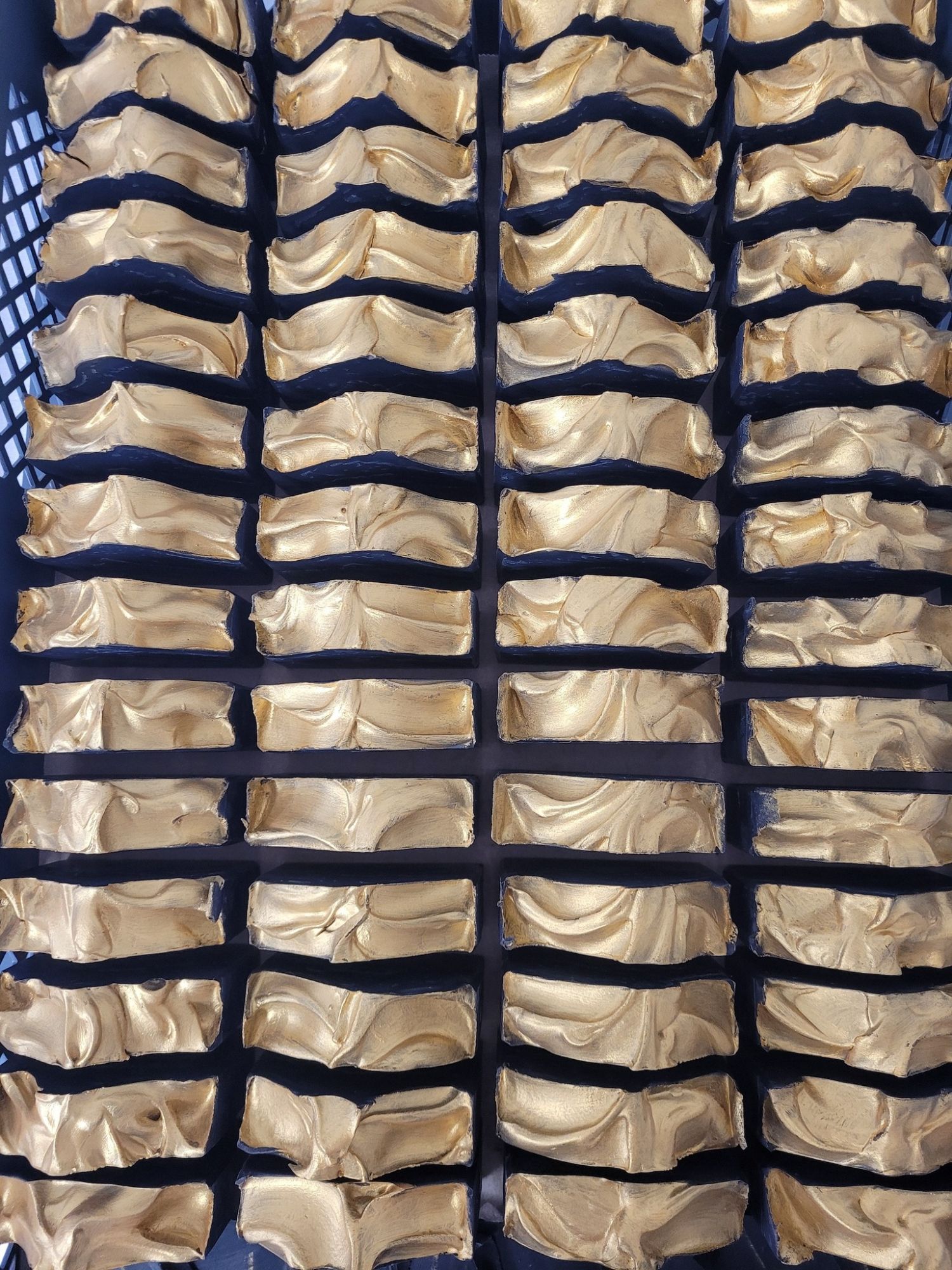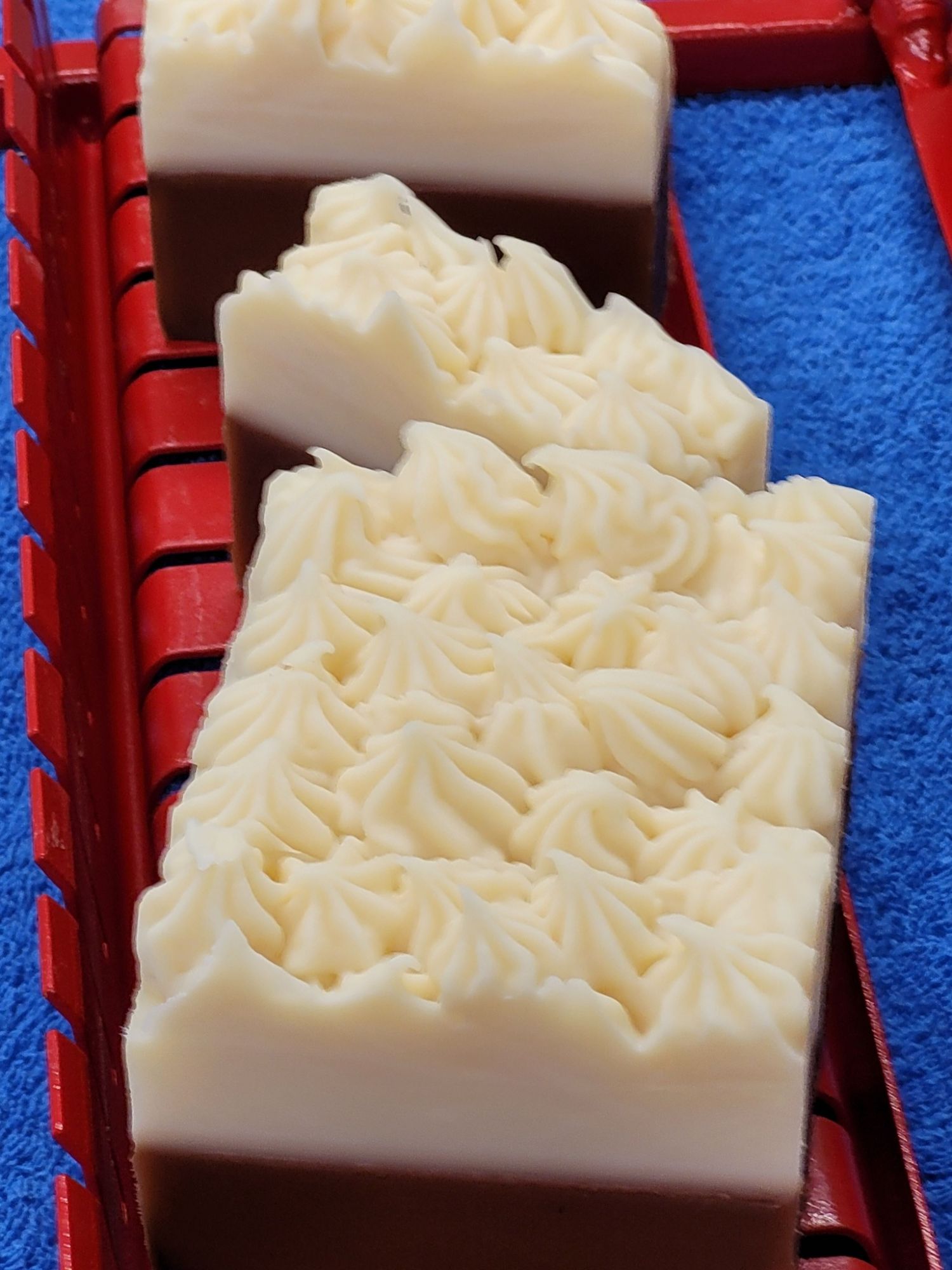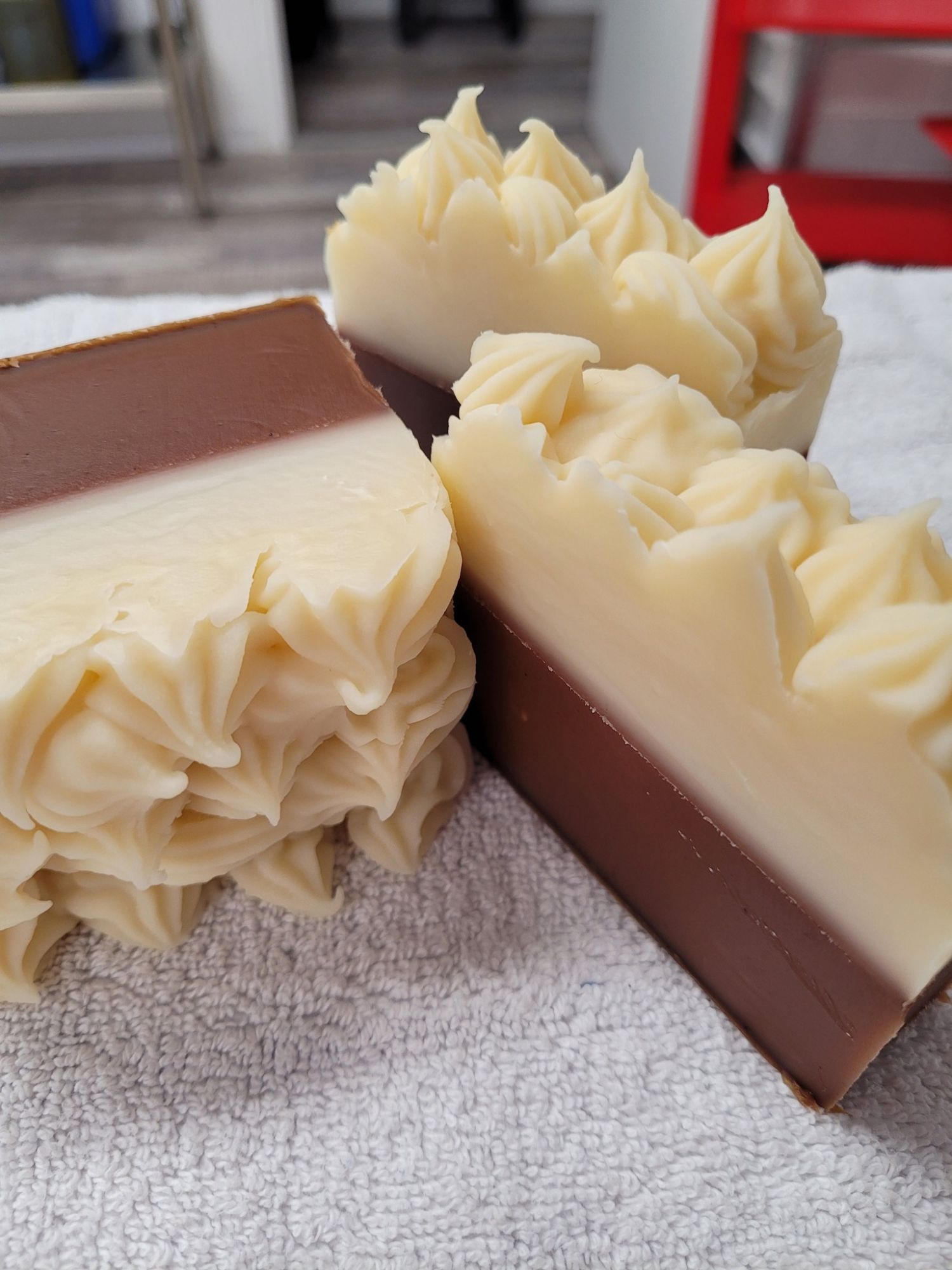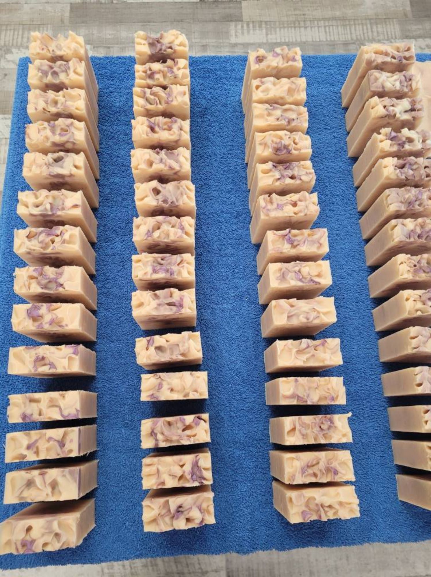 Savons saponifiés à froid : Doudou, Aventurine, Chocolat mousse, Vague Hokusaï, Jaspe rose, Jade’Or, Fleur d’argile, Chic cerise Lumière d’Outrenoir.