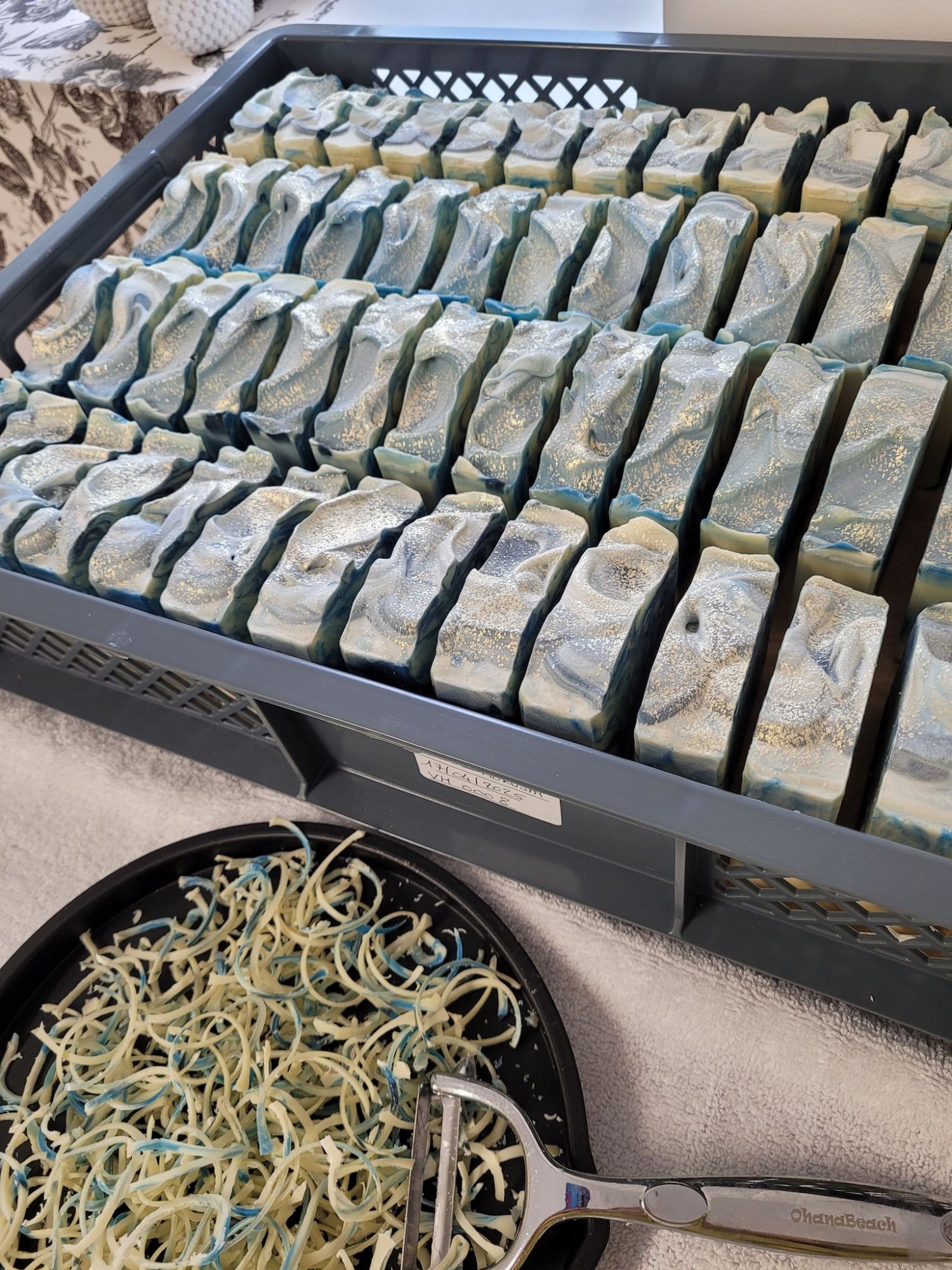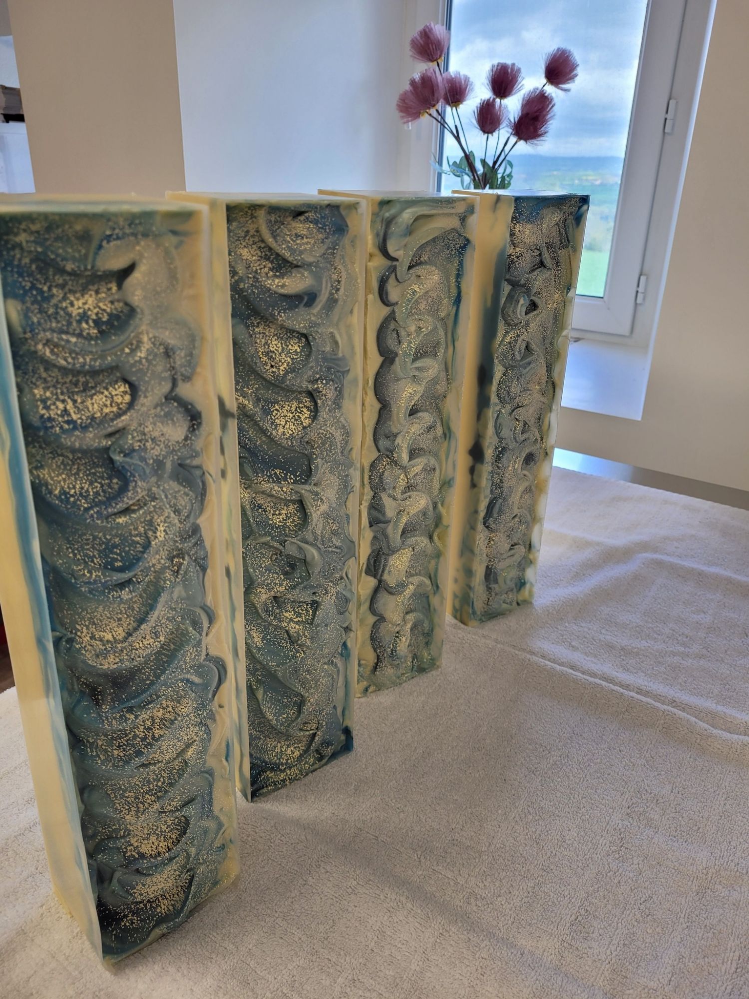Réalisation du pain de savon avec différentes techniques de marbrages