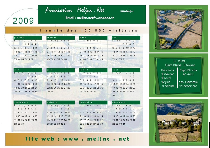 Depuis 2003, l’association imprime chaque année un calendrier qu’elle distribue dans tous les foyers de la commune de Meljac.