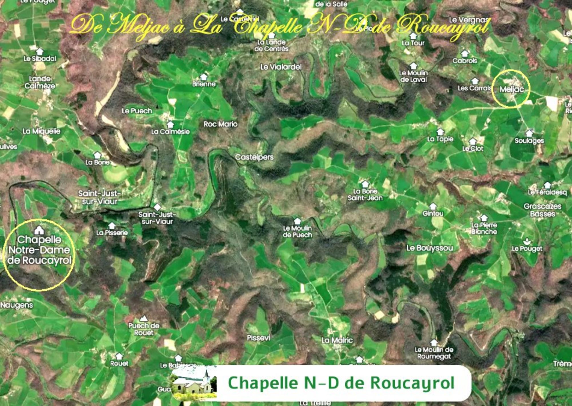Près de 10 kilomètres en effet pour se rendre de l’église de Meljac à la chapelle de Roucayrol et les routes, chemins et sentiers, n’étaient pas ce qu’ils sont aujourd’hui : direction le Martinesq par la croix du Clot ; puis direction le Roc par l’ancien chemin du Suc et par Subrigues… Là, le chemin du Roc avait été préalablement nettoyé de ses ronces et autres hautes herbes.