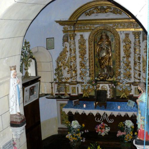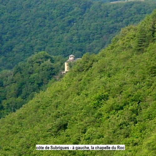 La chapelle du Roc au départ de la croix du Martinesq, lieu où se retrouvaient les pélerins venus de Meljac, se situe à environ 3 à 4 kms en suivant le chemin du Suc et de Subrigues. Elle apparait comme un site défensif refuge pour garder la vallée et un lieu de prière pour faire barrage au développement en Rouergue des idées nouvelles du Catharisme en provenance de l’Albigeois. Rempart temporel et spirituel contre l’invasion de l’hérésie cathare, la statue de Notre-Dame du Roc, à l’intérieur de la chapelle, représente la Vierge écrasant des serpents noirs.