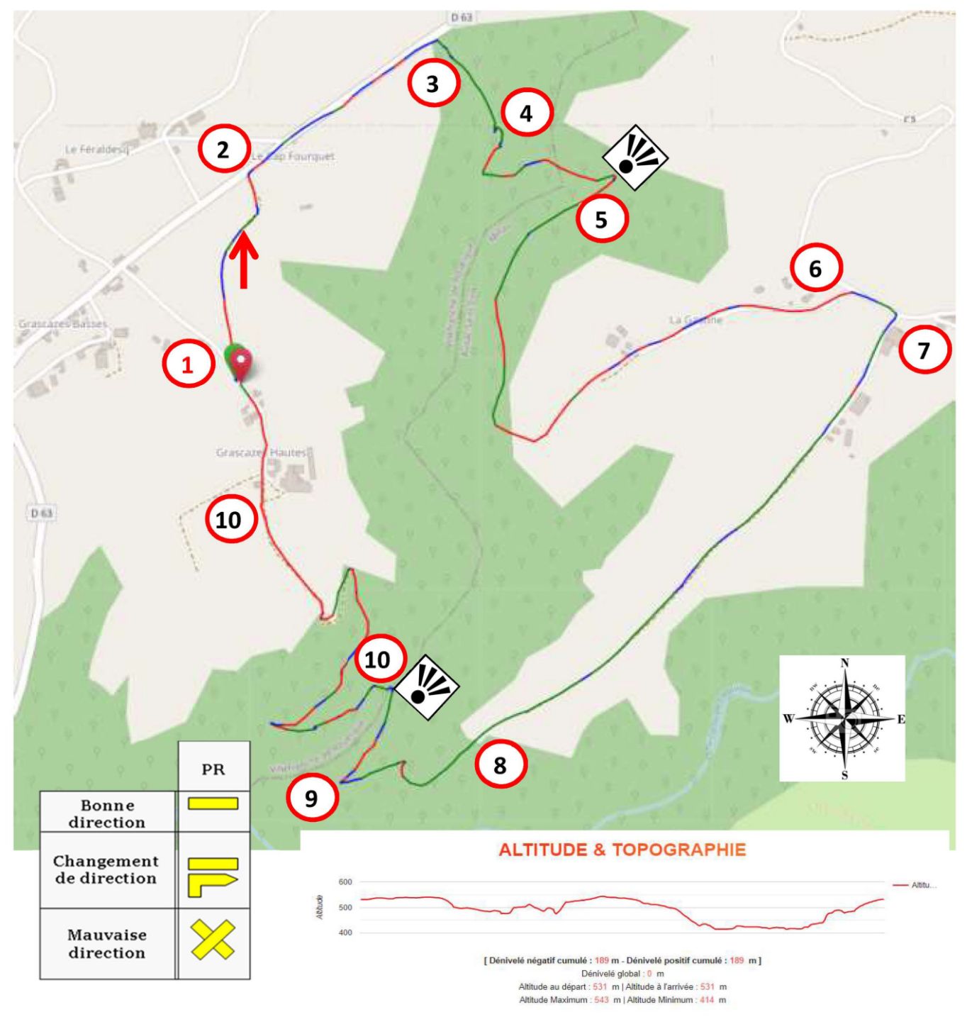 1- Départ : prendre direction Nord le chemin qui passe entre les deux haies