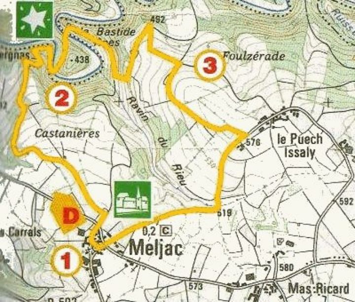A Cassagnes traverser le village, puis après 1 km, tourner à droite direction MELJAC.