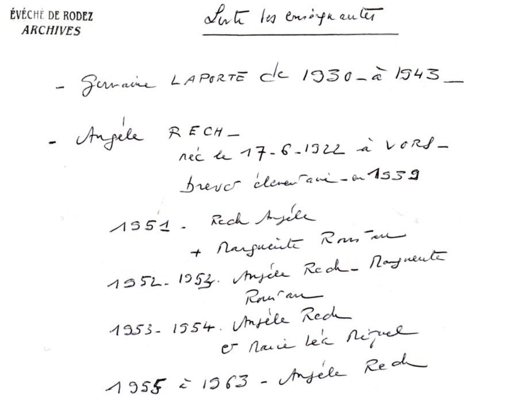 A l’époque la congrégation était celle " des Demoiselles de Marie Immaculée " reconnue par Rome . Le changement intervint plus tard, vers la « Sainte famille » de Villefranche de Rouergue.