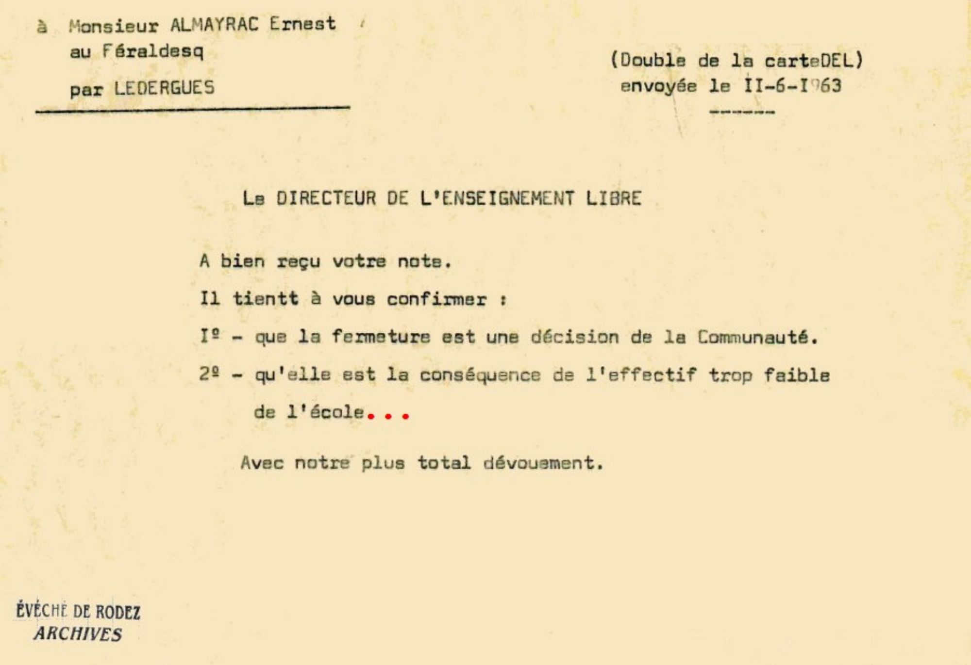 L'école libre de Meljac fermera en 1963 …