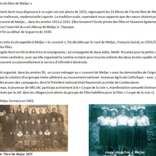 La galerie ci-dessous intitulée "au temps de l'école libre de Meljac" publiée le 11/03/2025 sur meljac.net résume l'ensemble de cette situation.