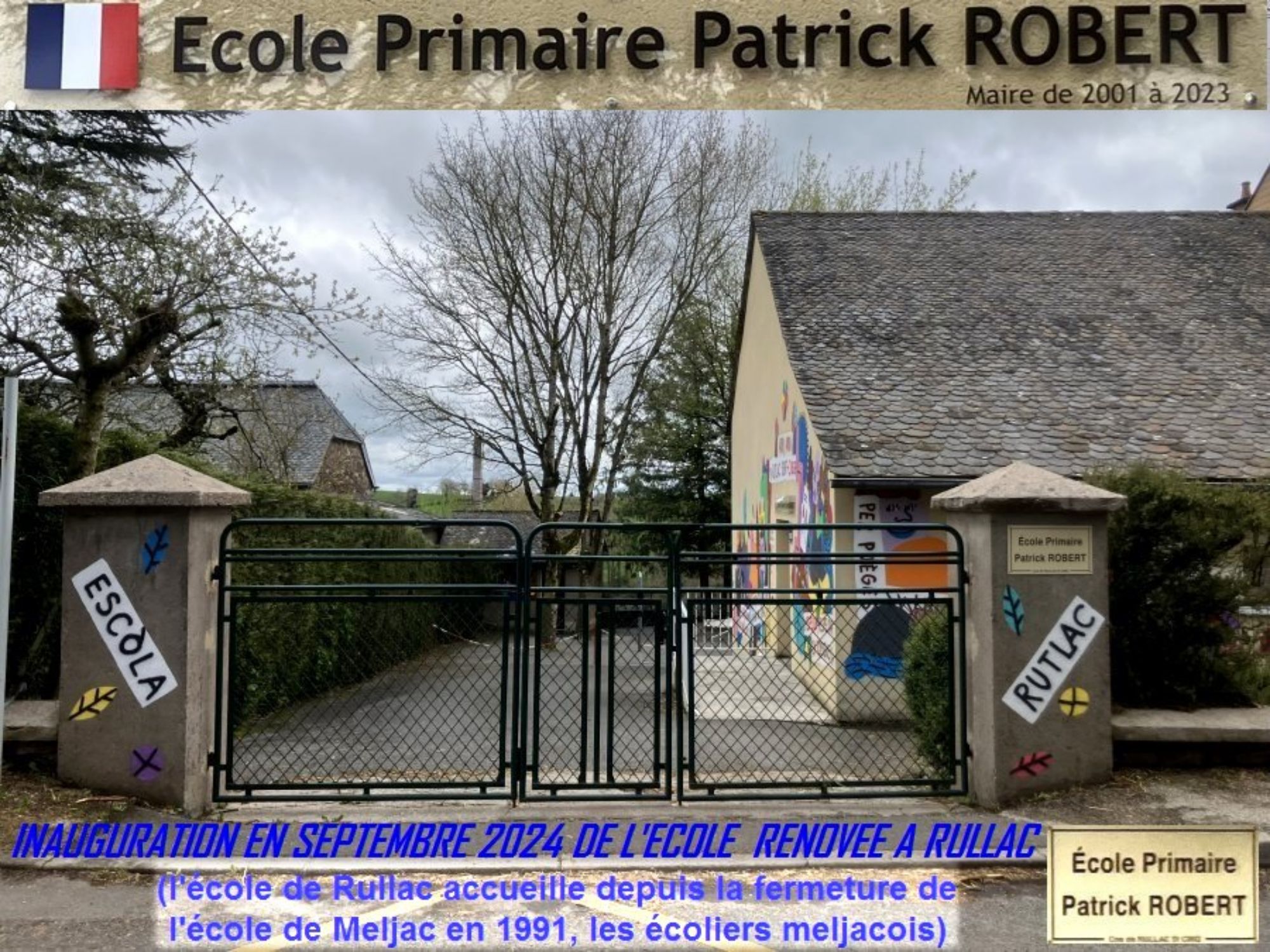 Cette école en 2024 prit le nom d’ «Ecole primaire Patrick Robert » en hommage à l’ancien maire de Rullac décédé en 2023.