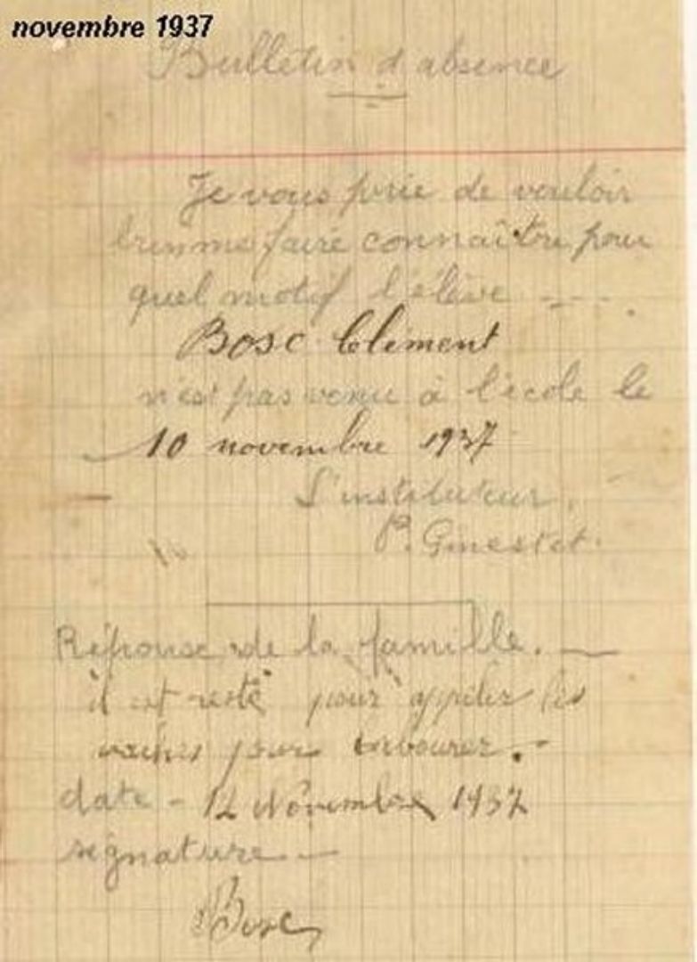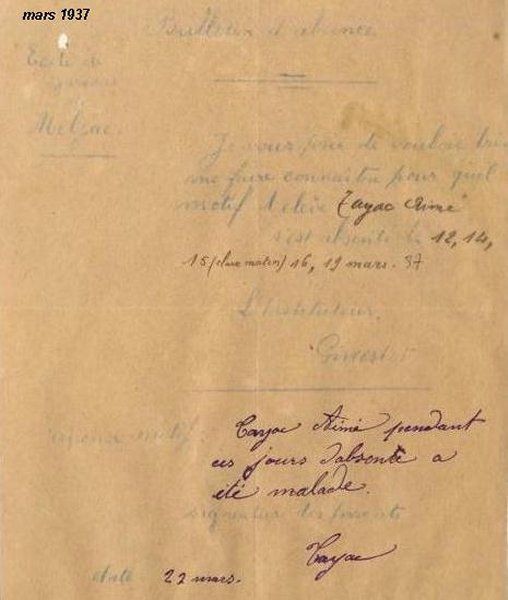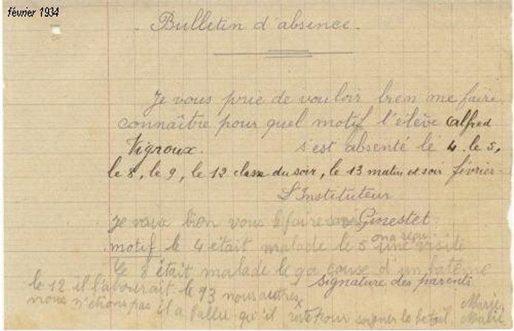 Mots d'excuses d’Alfred Vigroux, d’Aimé Tayac, de Clément Bosc et d'Henri Gimenez.