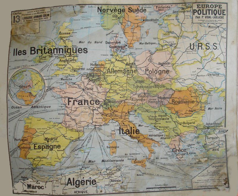 Nous avons également retrouvé quelques autres matériels scolaires : cartes murales de géographie, un "fer à marquer Meljac" (destiné à "marquer" l’ensemble des matériels, en particulier les meubles, appartenant à l’école ainsi que 2 supports -cadres de bois amovibles- contenant des séries d'images de "l'Histoire de France" ou de scènes de la vie quotidienne à la ville et à la campagne ; images que le "maître d'école", au gré de son programme, utilisait comme appui à sa pédagogie.